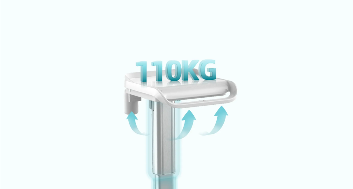 Được làm từ cột hợp kim nhôm cường độ cao, có khả năng nâng tổng tải trọng lên đến 110 kg. Thiết kế cải tiến đảm bảo độ ổn định tối đa và chuyển đổi độ cao mượt mà với cơ cấu nâng điện.