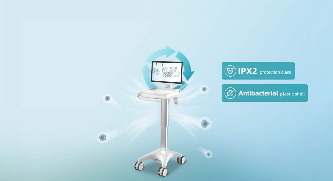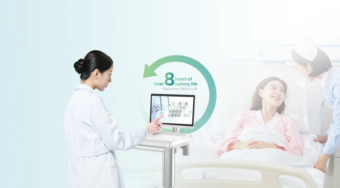 Được trang bị pin lithium hiệu suất cao, cung cấp thời lượng pin hơn 8 giờ. Hệ thống cung cấp điện DC UPS đảm bảo an toàn cho nhân viên y tế và bệnh nhân.