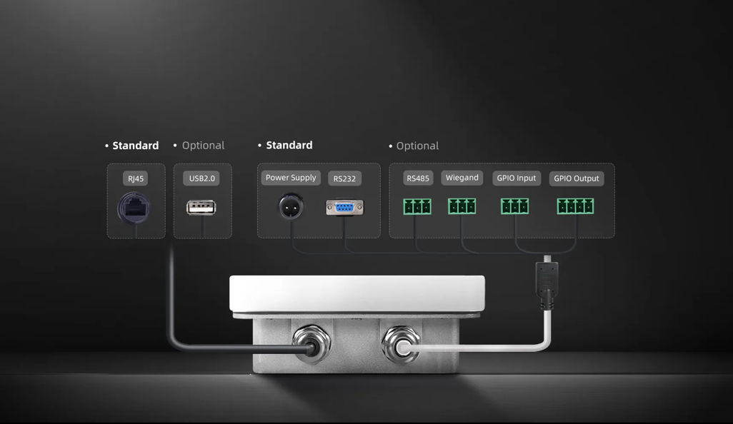 Wiegand, GPIO và USB2.0, mang lại khả năng tương thích vượt trội, dễ dàng thích ứng với mọi tình huống ứng dụng.